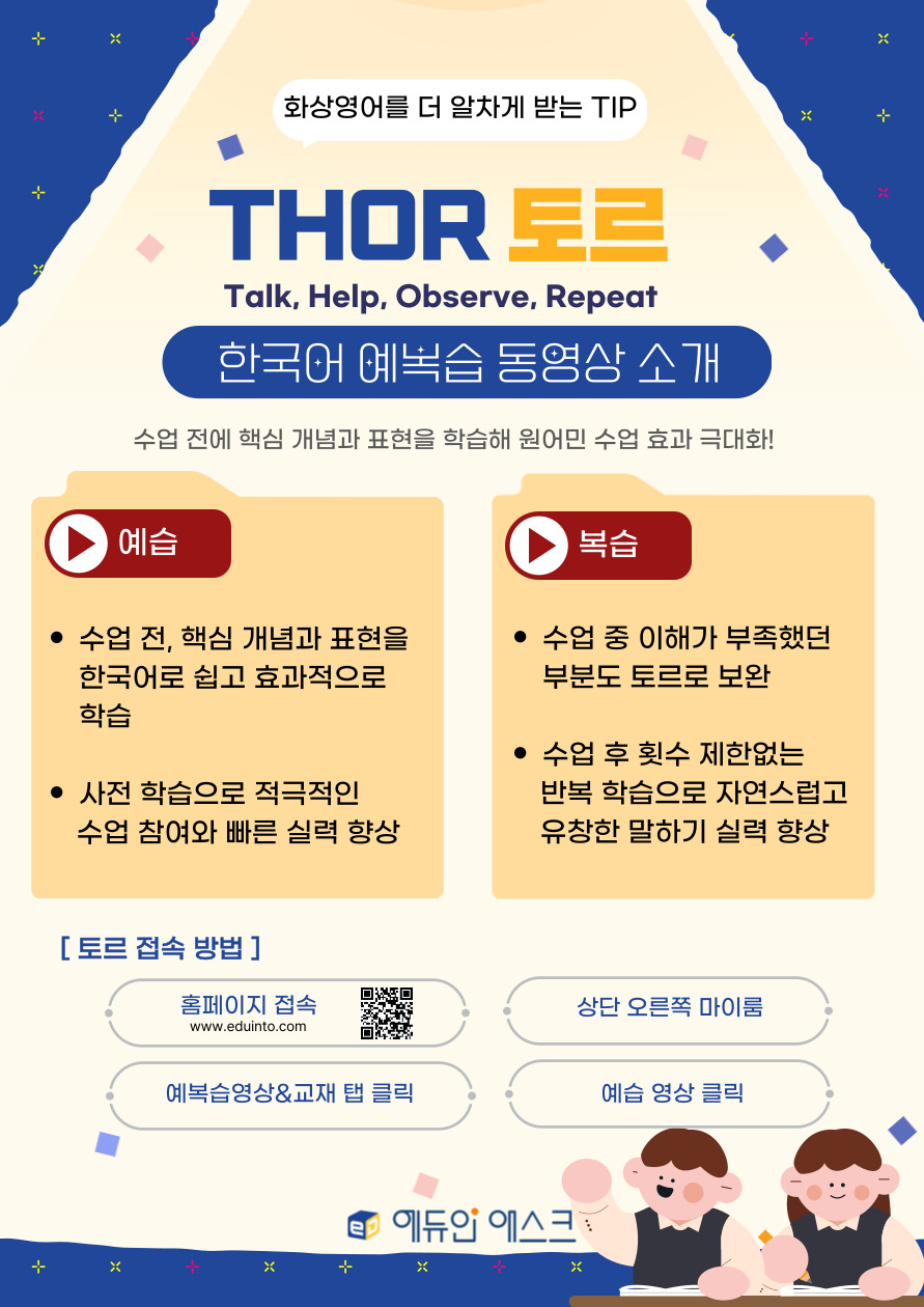 ![]() Çѱ¹¾î ¿¹º¹½À µ¿¿µ»ó 'Å丣' °¡ Ãâ½ÃµÇ¾ú½À´Ï´Ù. ¼ö¾÷ Àü ÇÙ½É ³»¿ë°ú Ç¥ÇöÀ» Çѱ¹¾î µ¿¿µ»óÀ¸·Î ¿¹½ÀÇØº¸¼¼¿ä. ¼±»ý´Ô°úÀÇ ¼ö¾÷ÀÌ ±â´Ù·ÁÁö°í Àû±ØÀûÀÎ Âü¿©µµ °¡´ÉÇÕ´Ï´Ù. ¼ö¾÷ ÈÄ ÀÌÇØ°¡ ºÎÁ·Çß´ø ºÎºÐÀ» Åä·Î º¹½ÀÇØº¸¼¼¿ä. Ƚ¼ö Á¦ÇѾøÀÌ ¹«Á¦ÇÑ ¹Ýº¹ ÇнÀÀº ÇлýÀÇ ¸»Çϱ⠽ǷÂÀ» ¾÷±×·¹ÀÌµå ½ÃÄѵ帳´Ï´Ù. Áö±Ý ¹Ù·Î ¡®Å丣¡¯ ¿¹º¹½À µ¿¿µ»ó°ú ÇÔ²² Ȼ󿵾 µÎ ¹è·Î ¾ËÂ÷°Ô °æÇèÇϼ¼¿ä! |